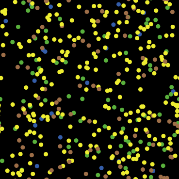 Try setting the YELLOW-MOLECULES slider to 400 and the BLUE-MOLECULES slider to 20, 40, 100, 200, and 400 in five successive simulations. What sort of equilibrium state do you predict in each case? Are certain ratios predictable?