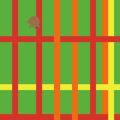 The busiest-roads global variable sets the busiest road the model will randomly generate. The bear is more likely to cross abandoned roads than roads with low traffic, and more likely to cross roads with restricted traffic than roads with high traffic.